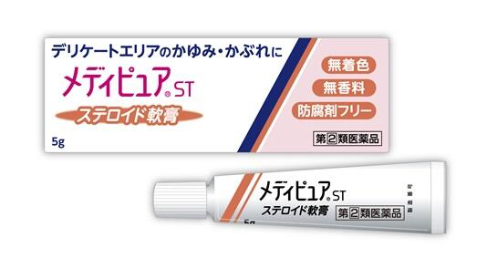「メディピュアST」は、ステロイド成分を配合した無着色・無香料・防腐剤フリーの患部への刺激が少ない軟膏タイプの外用剤である。デリケートエリアのかゆみ・かぶれの原因である炎症を、ステロイド成分でしっかりと鎮めて治す。