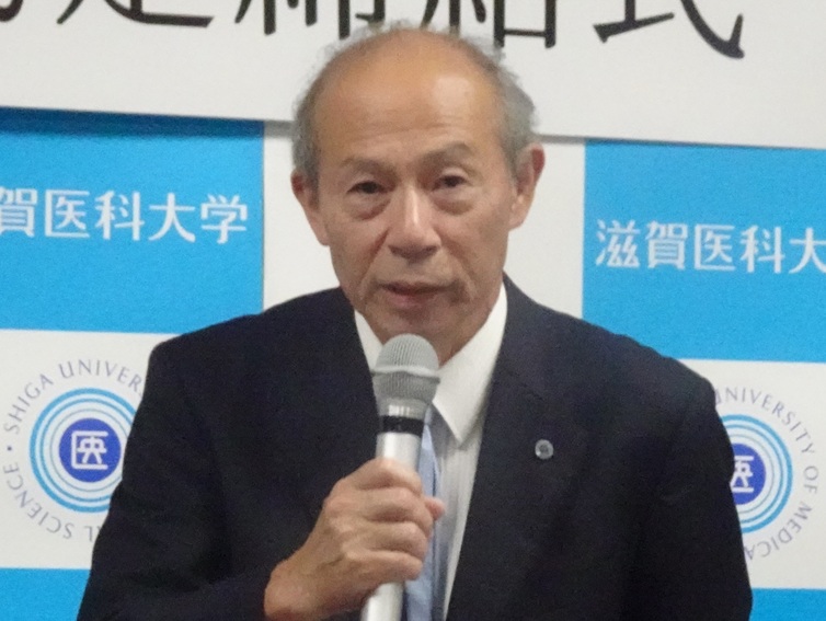 共同研究講座設置に関する協定締結式では、上本伸二滋賀医科大学長が、「非臨床試験から臨床への橋渡し研究を推進するため、医薬品評価、技術プラットフォームを整備し、創薬研究に貢献したい。また、滋賀医科大学の既存講座との連携を進め、新たな研究課題の創出を目指す」と強調。