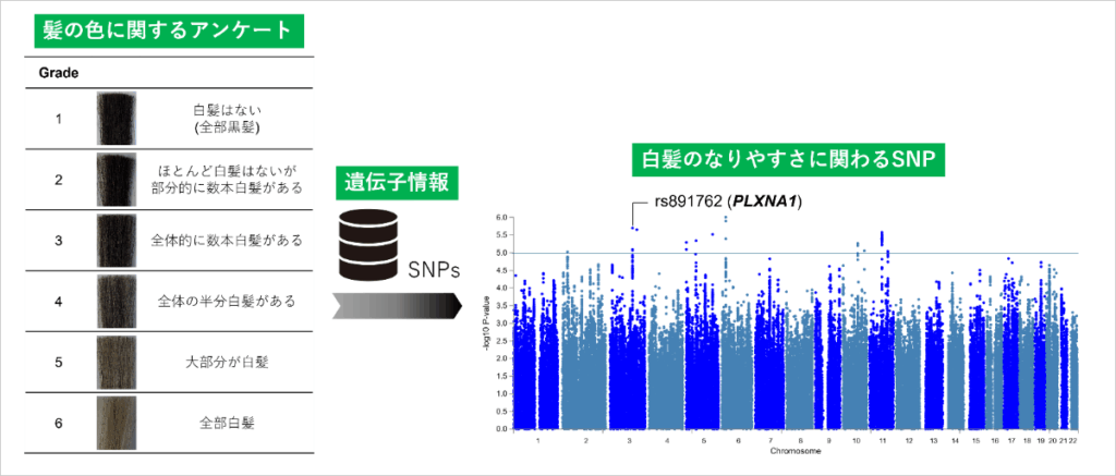 白髪による心理的負担の軽減と生活の質向上への貢献を目指し、日本人特有の遺伝的背景に基づいた白髪メカニズムの解明に取り組んだ。