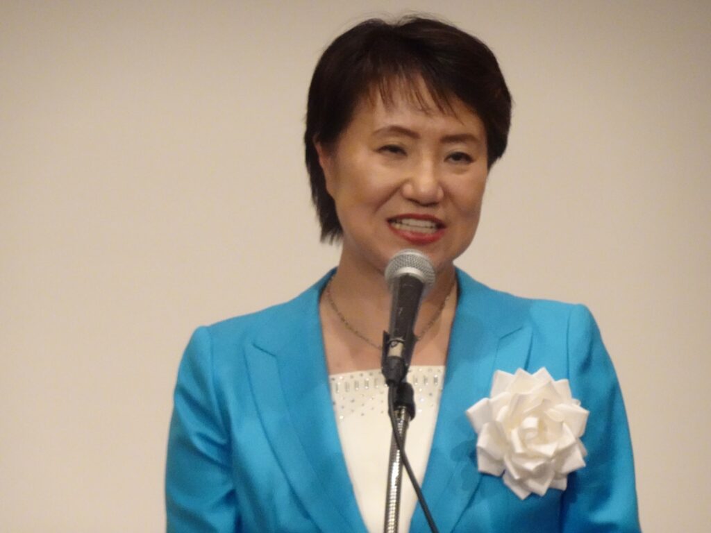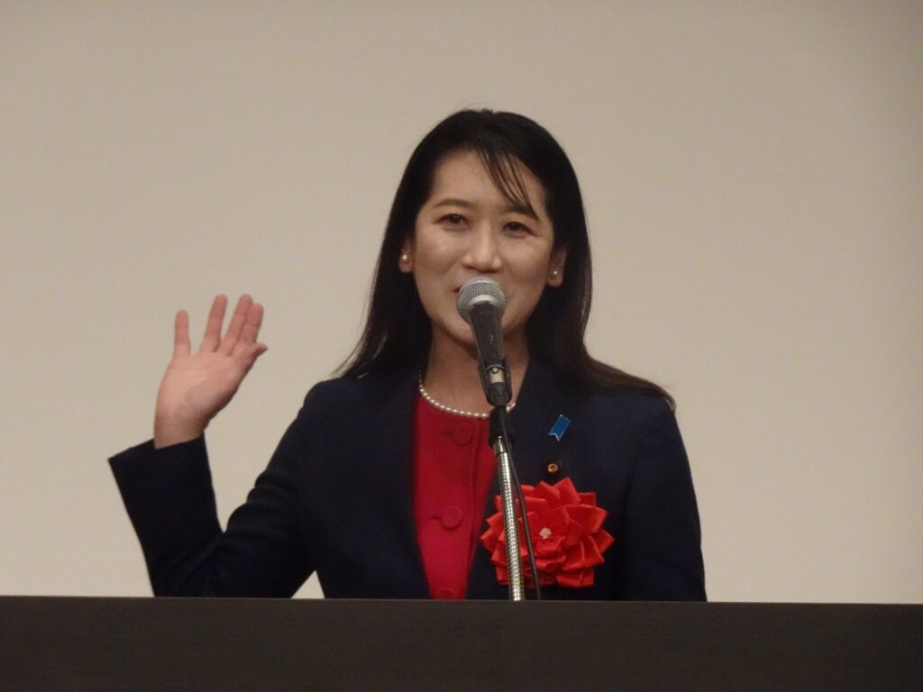 来賓祝辞では、登壇者から温かな力強いメッセージが送られ、会場が活気付いた。その中で、松川るい参議院議員は「今、高市総理の支持率は80%でまだ自民党はそこに追いついていない。だが、スピード感を持って税制改や診療報酬改正などの様々な施策を進めている」と報告。