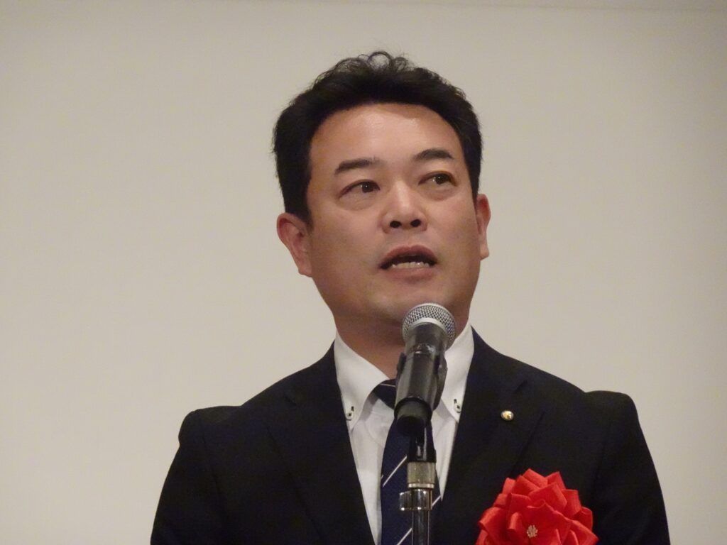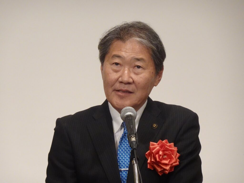神谷まさゆき厚労大臣政務官(薬剤師 参議院議員)は、「高市政権は、攻めの予防医療を強く政策として押し出している。それは渡嘉敷氏がはるか先を見通して取り組んでこられた健都(大阪府吹田市)が深く関わっている分野である」と紹介。その上で、「是非国政に復帰して頂いて、後人の育成、日本・大阪をしっかりと支えて頂きたい」と激励した。