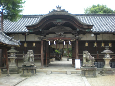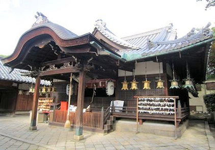 菅原神社:学問の堺天神、商売繁盛の堺戎。病気平癒がん封じの薬祖、人生に必要な願意が揃う神社 堺の浜に漂着した菅原道真自作の木像を祭ったのがはじまり、堺天神と親しまれ、境内にある摂社の堺戎神社は、堺えびすとして、南大阪随一のえべっさんとして有名です。鉄砲鍛冶・榎並屋勘左衛門の寄進により、延宝5年(1677年)に建てられたと伝えられる楼門(ろうもん)は大阪府指定有形文化財です。これの特徴のひとつは軒を支える複雑な組物に、彫刻を刻んだ絵様肘木(えようひじき)という肘の形をした組物を用い建築技法を簡略化していることで、府下では数少ない楼門建築として貴重です。