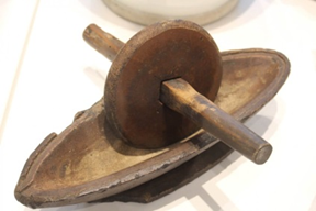 「薬研」とは、生薬を粉末にしたり、細かく砕いたりする際に漢方医などが用いる器具のこと。細長い舟形の形状をしていて、中央がV字形にくぼんでいるのが特徴です。