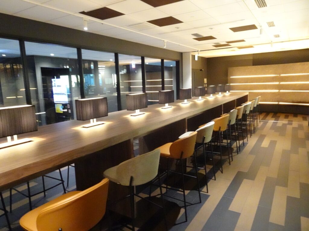 ビルインでありながら、「つながり」を重視し、フロア中央の床を抜き2本の階段を配置。階段周りには、北米、欧州、アジアなど5大陸をテーマとしたコミュニケーションスペースが設置されている。単なる階段ではなく、特徴ある核エリアとなっているスペースには、自然と人が集まってくる。