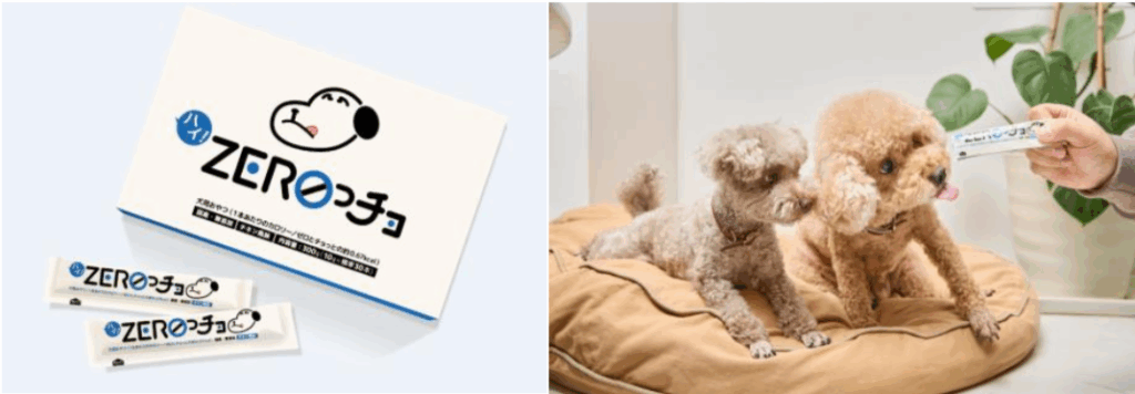 「ZEROっチョ」は、「いつものおやつはまたあとで。ハイ!ZEROっチョ!」をキャチフレーズとする。1 日のおやつの回数はそのままで、いつものおやつを何回か一般的なおやつと比較して低カロリー である「ZEROっチョ」に置き換えることで、犬の健康に貢献する。