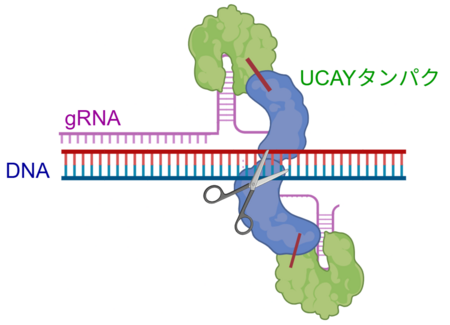 国産ゲノム編集技術UCAYは、既存技術では困難な遺伝子領域に対しても編集できる特徴を有する。だが、UCAYには編集箇所を特定するためのRNA(ガイドRNA)配列のデザインツールが存在せず、これまでそのデザインは経験豊富な研究者の職人技に頼っていた。