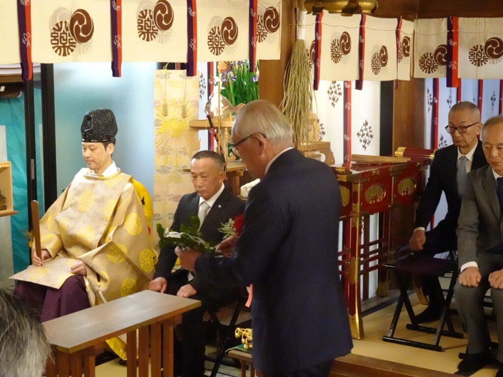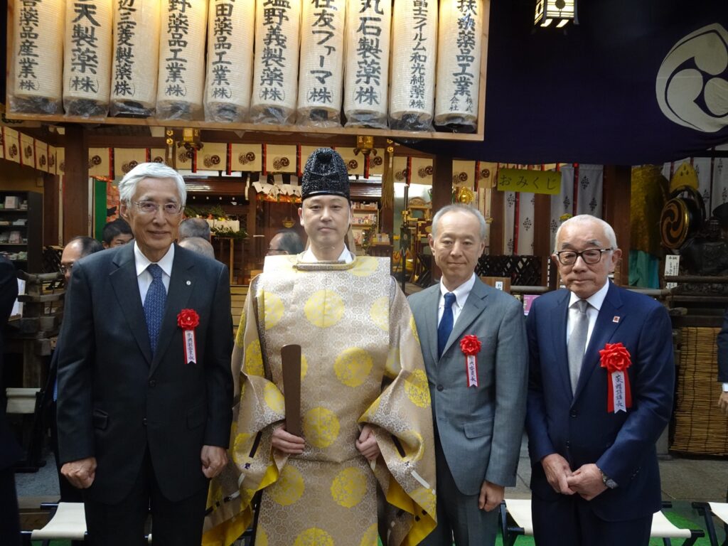 今年は、塩野元三薬祖講講長(塩野義製薬名誉顧問)を筆頭に、森下雄司氏(森下仁丹社長)が祭典委員長、柴田仁氏(大幸薬品会長)が副祭典委員長を努めた。