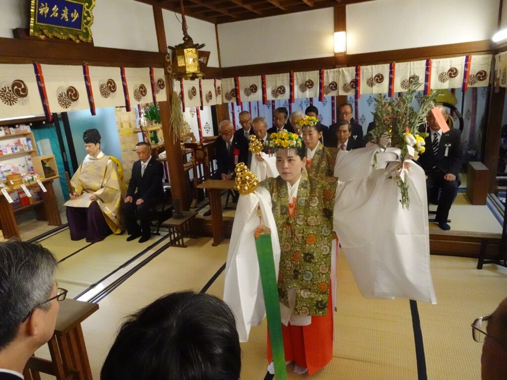 22日の午前10時から薬祖講役員らが参加して開かれた神農祭宵宮祭では、修祓、祝詞奏上、お神楽奏上、玉櫛奉奠、撤饌などの神事が行われ、人々の健康や薬業界の発展が祈願された。