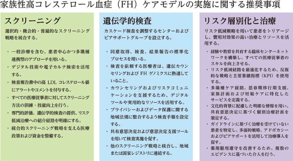 さらに、同論文では、FHを「精密医療・個別化医療のモデル疾患」と位置づけ、科学的根拠に基づいた診療の普及を促進するために、実装科学(Implementation Science)の手法を活用することの重要性が強調されている。これは、診療ガイドラインの策定にとどまらず、医療体制・教育・政策を含めた実際の医療現場への落とし込みを目指す新しい学問領域である。