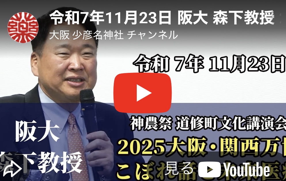 少彦名神社と医薬通信社は27日、道修町神農祭文化講演会として23日に開かれた森下竜一大阪ヘルスケアパビリオン総合プロデューサー(大阪大学大学院医学系研究科寄附講座教授)の「大阪・関西万博のこぼれ話と未来医療」の講演をノーカットでYouTube配信した。動画URLhttps://youtu.be/igrZiw43dro?si=rsKltysw5uytUn21