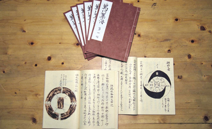 中世〜甲賀忍者とくすり(甲賀売薬):甲賀流忍術の極意書「万川集海(ばんせんしゅうかい)」には、忍者たちが薬草を育て、独自で加工し様々な生薬を生み出していたことが記されています。そして、山伏や修験者がお札や加持祈祷とともに全国にくすりを広め、忍びと云われる者は、町人や商人になり諸国を渡り歩きながら、独自で開発した常備薬や護身薬を旅先で売って歩いたと云われています。こうして、全国の情報を収集し、くすり創りにもたけ、火薬も取り扱う者(当時のハイテク集団)が後世には「忍者」と呼ばれたものと云われています。