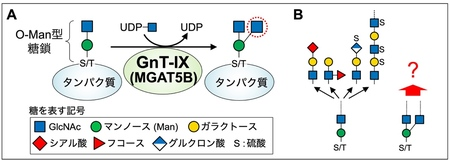 木塚氏らの研究では、脳において脱髄疾患などに関わるO-Man型糖鎖に着目した。O-Man型糖鎖は、脳に特異的に存在するGnT-IX(別名MGAT5B)と呼ばれる糖鎖合成酵素によって枝分かれ構造が作られる。