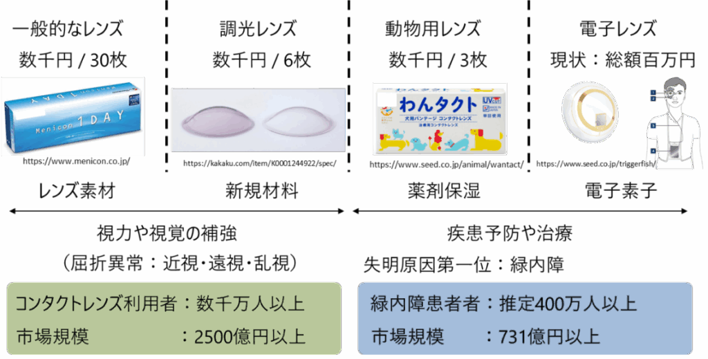 図2:コンタクトレンズの機能拡張とその市場規模