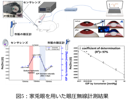 さらに、豚眼を用いたin vitro実験およびウサギを用いたin vivo実験により、商用眼圧計との間でR²=0.93~0.97の高い線形相関が得られ、同センサレンズが長期かつ非侵襲で眼圧をモニタリングできるプラットフォームとして有望であることを示した。