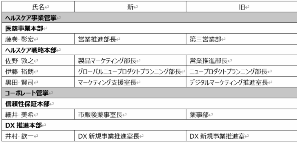 ・ヘルスケア戦略本部傘下の「デジタルマーケティング推進室」を、「マーケティング支援室」に改称する。