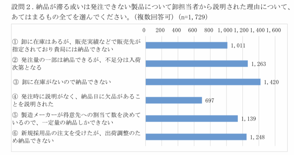 納品が滞る或いは発注できない製品について卸担当者は次の理由を挙げている。