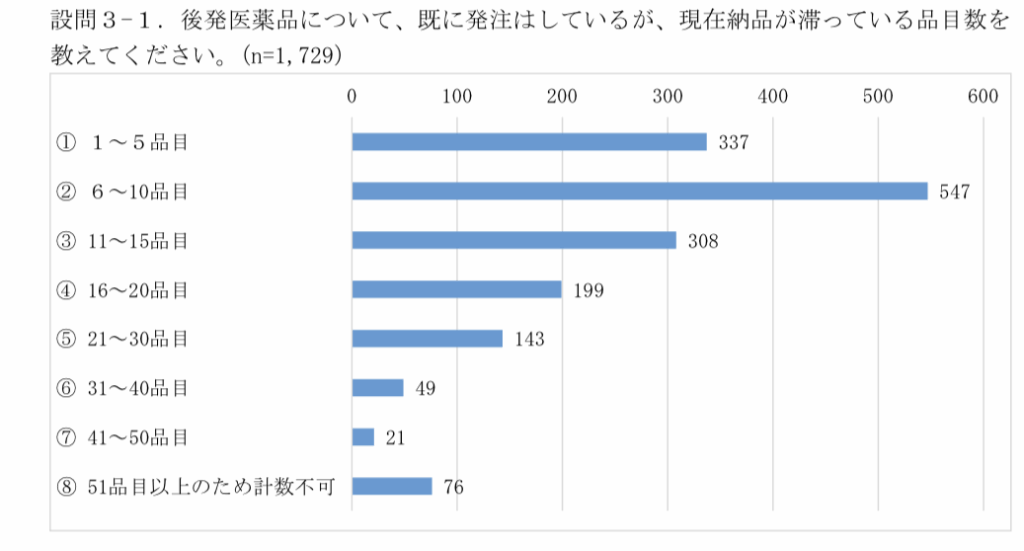 後発医薬品について、既に発注はしているが、現在納品が滞っている品目数は次の状況だ。