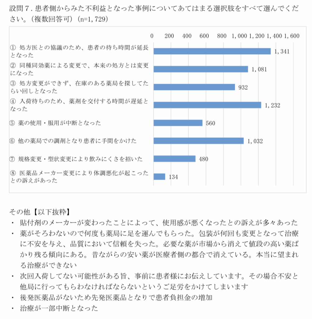 羽尻氏は、「後発品不足が長年続いているので、理解して頂ける患者さんも増えてきたようだ」と話す。とはいえ、患者側からみた不利益となった事例もアンケートでは取り上げられた。