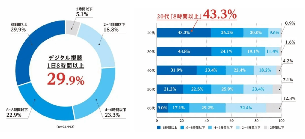 ・ 20~30 代は 4 割以上が 8 時間超の長時間視聴
