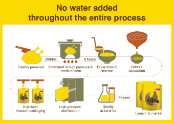 鶏のみを使用し、水や塩などの味付けは一切加えていない。しめてから 30 分以内に抽出工程へ移行し、8 時間かけてじっくり高圧抽出し、1 袋にエッセンスを凝縮している。台湾では受験生や産後の贈答品として親しまれている伝統的滋養食である。