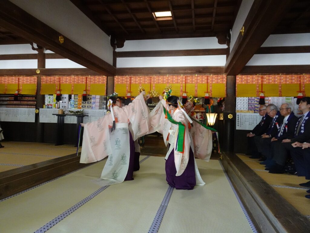 祭典では、修祓、祝詞奏上、神楽奇魂の舞、玉櫛奉奠、撤饌などの神事が行われ、塩野元三薬神講会長(塩野義製薬名誉顧問)ら参列者代表が神前に玉櫛を奉奠した。