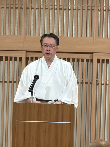 続いて塩野元三薬神講会長が、「薬神講を始めとする多数の皆様のご参列のもと、鎮花祭が盛大に執り行われたことを心より御礼申し上げる」と謝辞を述べた。