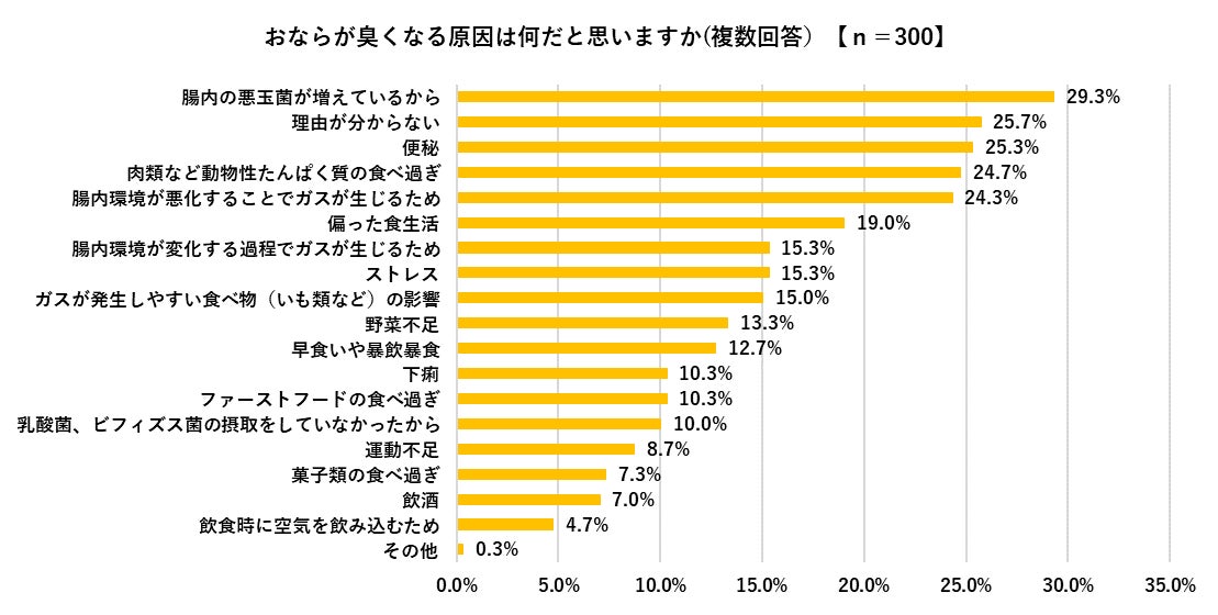 ◆おならが臭くなる原因については、「腸内の悪玉菌が増えているから」(29.3%)がトップ。