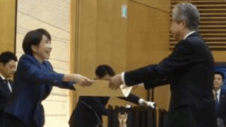 高市首相から表彰状を授与される奥澤社長 第一三共は19日、内閣府が主催する第8回日本医療研究開発大賞において、山岸誠東京大学大学院新領域創成科学研究科准教授とのEZH1/2エピゲノム制御を標的とするがん治療薬「エザルミア」の創製が評価され内...